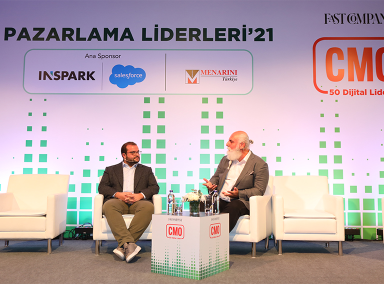 Araştırmada ikinci sırada yer alan Trendyol’un CMO’su Erdem İnan (solda), ‘Pazarlama&Teknoloji’ başlıklı oturumda Inspark CEO’su Serdar Susuz’un sorularını yanıtladı.