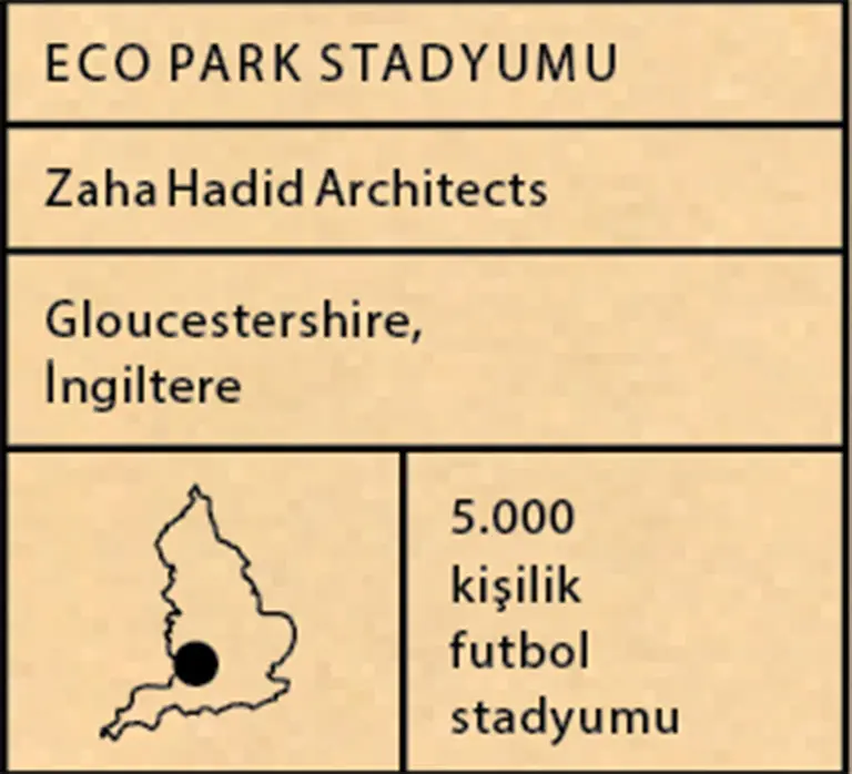 FIFA’ya göre Forest Green Rovers “dünyanın en yeşil futbol kulübü”. Burada oyunculara ve taraftarlara sunulan tüm yiyecekler vegan. Bu yaklaşıma uygun olarak, Zaha Hadid Architects’in kulüp için önerdiği yeni karbon-nötr, ahşap stadyum dünyada türünün ilk örneği. 5 bin koltuk kapasiteli stat, sürdürülebilir bir malzeme olan ahşaptan yapılacak ve hafif, şeffaf çatısı sayesinde gün ışığıyla aydınlatılacak. Projenin Direktörü Jim Heverin, kullanılan malzeme nedeniyle maliyette küçük artışlarla ahşabın hafifliği ve fabrikasyon işlemi sayesinde stadyuma benzersiz bir şekil kazandırılabildiğini söylüyor. Tipik bir stadyum koltuk başına 358 kg ile 1270 kg arasında karbon salımına neden olurken, ZHA’nın ölçümüne göre bu miktar Eco Park Stadyumu’nda 200 kg civarında olacak.