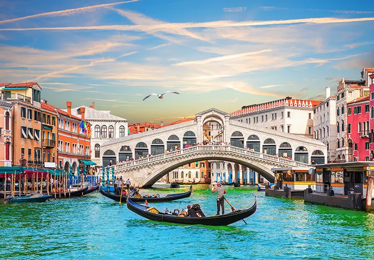 Son dönemde turist kalabalıklarına getirdiği kısıtlamalar ve suların yükselme hızı böyle giderse 2100 yılı itibarıyla sular altında kalacağı haberleriyle gündeme gelen Venedik, her daim bir çekim noktası. 118 adadan oluşan Venedik’te görülmesi gereken yerlerin başında San Marco Meydanı, Basilica di San Marco ve Doge Sarayı var. Bu bölge, şehrin tarihsel ve mimari merkezi. Yine Büyük Kanal boyunca gondolla veya “vaporetto” adı verilen su otobüsleriyle yapılacak bir tur, Venedik’in klasik manzaralarını keşfetmek açısından ideal. Büyük Kanal’daki ilk köprü olarak bilinen Rialto Köprüsü de (1591) hem mimarisi hem de çevresindeki pazar alanıyla öne çıkan bir durak. Venedik’in lagün adalarına yapılacak bir geziyi de mutlaka planınıza dahil edin. Bu gezide uğrayacağınız Murano Adası cam işçiliğiyle, Burano renkli evleri ve dantel işçiliğiyle, Torcello ise daha sessiz ve tarihi atmosferiyle dikkat çekiyor.