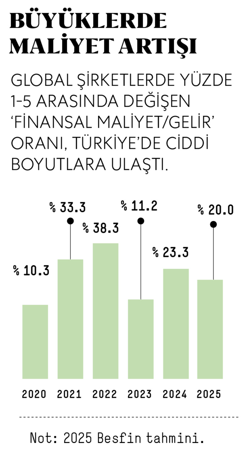 Petrol Ofisi Grubu CEO’su Mehmet Abbasoğlu da benzer bir görüş paylaşıyor. “Son 5 yıllık dönemde finansman giderlerimizin EBITDA’ya oranı yüzde 30 seviyelerinden yüzde 100 seviyelerine kadar yükseldi” diyen Abbasoğlu, bu görüşünü şöyle ortaya koyuyor: