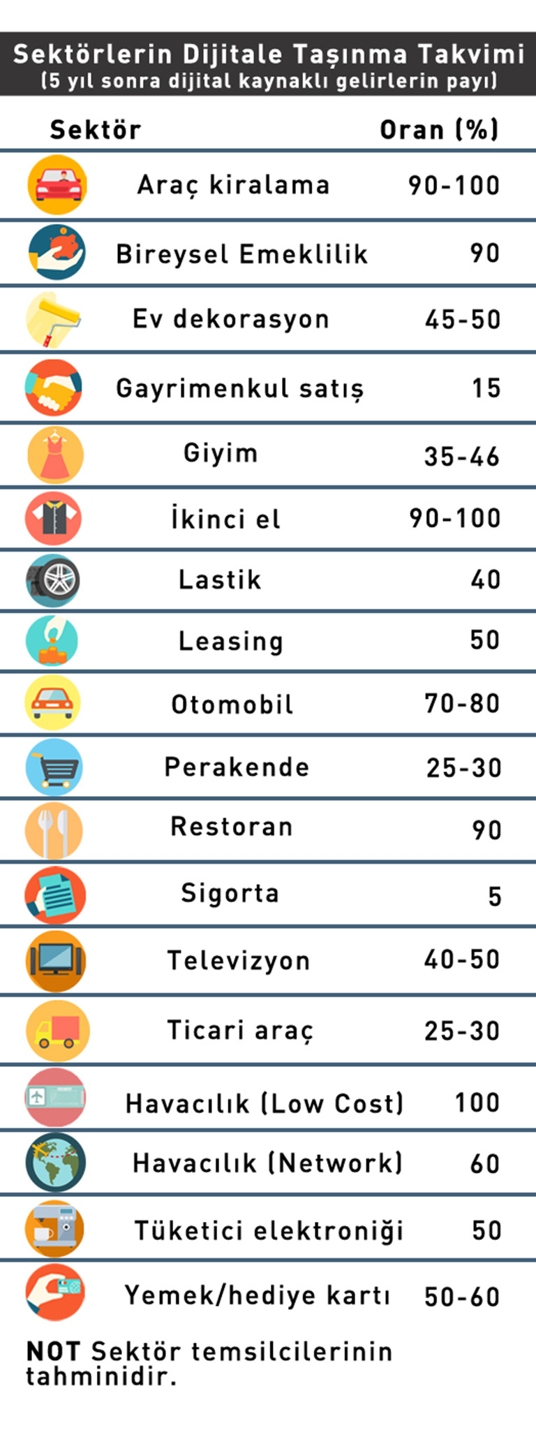 - Turizm, beklendiği gibi listenin sonunda yer alıyor. Ancak, McKinsey uzmanları, işlemlerin yüzde 31’inin dijitale taşındığı sigortacılığın durumunu anlamakta zorlanıyor. Üstelik, pandemi döneminde sadece yüzde 3 artış eklenmiş.