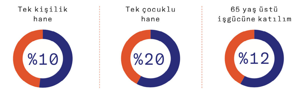 - Günümüzdeki eğilimler devam ederse, 2014’te yüzde 8 olan “yaşlı nüfus” oranı 2050’de yüzde 17’ye çıkacak.