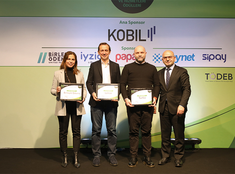 Etkinliğin kapanışında ödüller takdim edildi. “En Büyük 5 Fintech Şirketi” ödülünde ikinci sıradaki şirket isminin açıklanmasını istemedi. Ödülleri Kobil’den Dilara Koyun verdi: İlker Diker (Papara CPO, en sağda), Serkan Çelik (Paynet CEO, sağdan ikinci), Ahmet Bal (iPara, o dönem YKÜ, soldan ikinci) ve İsmail Sevinç (Sipay GMY, sol başta)…