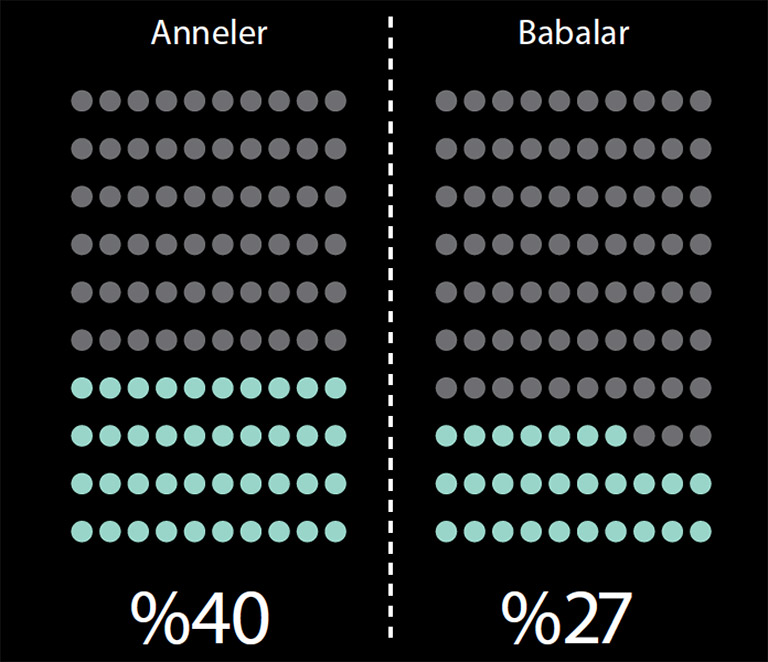 Pandeminin başından bu yana, haftada 15 saat veya daha fazla süreyi bakım vermek için harcadıklarını söyleyen ebeveynlerin yüzdesi: