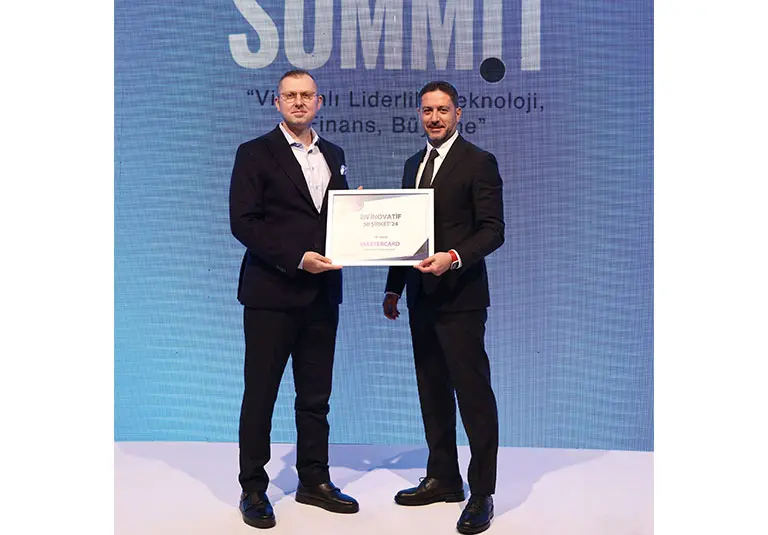MasterCard Türkiye Genel Müdürü Avşar Gürdal, ödülünü Hopi CEO’su Yalın Özcan’dan aldı.