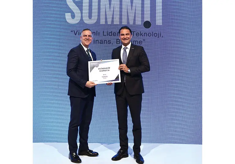 Sürat Kargo CEO’su Cem Oğuz, TOKEN CEO’su Erkan Duysal’a ödülünü takdim etti.