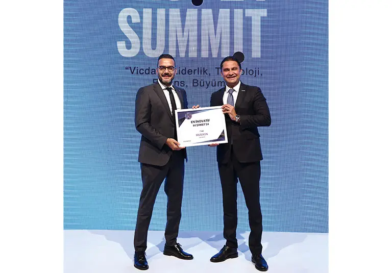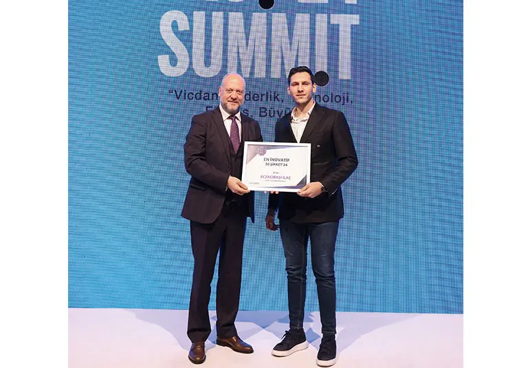Araştırmada ilk 10’de yer alan şirketlerden Erciyas Holding CEO’su Emre Erciyas, ödülünü MechSoft’un CEO’su Gökhan Erdoğan’dan aldı.