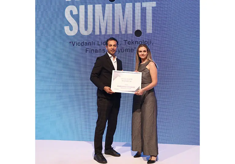 AGON Biotechnology’nin kurucularından Aleyna Yıldız, ödülünü Gökhan Erdoğdu’dan aldı.