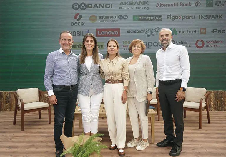“Geleceğin Normali” oturumunun katılımcıları: (Soldan sağa) Ali Emre Sever (Multinet Up), Emre Turanlı (Shell Türkiye), İlker Sözdinler (United Payment), Mehmet Keteloğlu (Google Türkiye), Ömer Mert (Fibabanka) ve Özarslan Tangün (Enterprise Türkiye)…