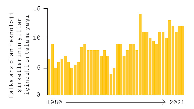 Son 20-30 yılda ve özellikle de 2008 finansal krizinden sonra, kâr etmeden halka arz olan olgun şirketlerin oranı çok büyük ölçüde değişti. 1980’de 8 yaşın üzerinde ve halka arz olan şirketlerin yüzde 90’ı kâr ediyordu. 2008’de bu oran neredeyse yarı yarıya düştü.