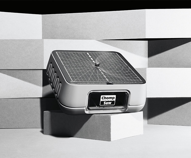 Okuldan arkadaşlar olan Kausi Raman ve Max Liechty’nin ürünü piyasaya sürmek için Kickstarter’da 1.2 milyon dolar toplamalarından önce geliştirdikleri ChompSaw, sağlam, zarif el işleri üretmek için eski Amazon kutuları ve diğer karton hurdalarını oydukları çocuk dostu bir kesim aleti. Hassas zigzaglı kenarlardan, şık kavisli köşelere, ChompSaw’la kesilmiş karton, binaların, kostümlerin ve sanatın temel taşlarını oluşturabilir.