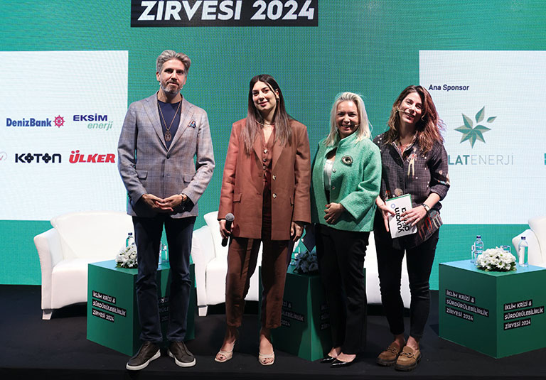 Yapımcı Nisan Ceren Özerten’in yönettiği “Yaratıcı Sektörlerin İklime Etkisi” başlıklı panelde, ünlü sanatçı Nil Karaibrahimgil ve Ay Yapım CEO’su Kerem Çatay, iklim kriziyle mücadele için çözüm önerilerini tartıştı.