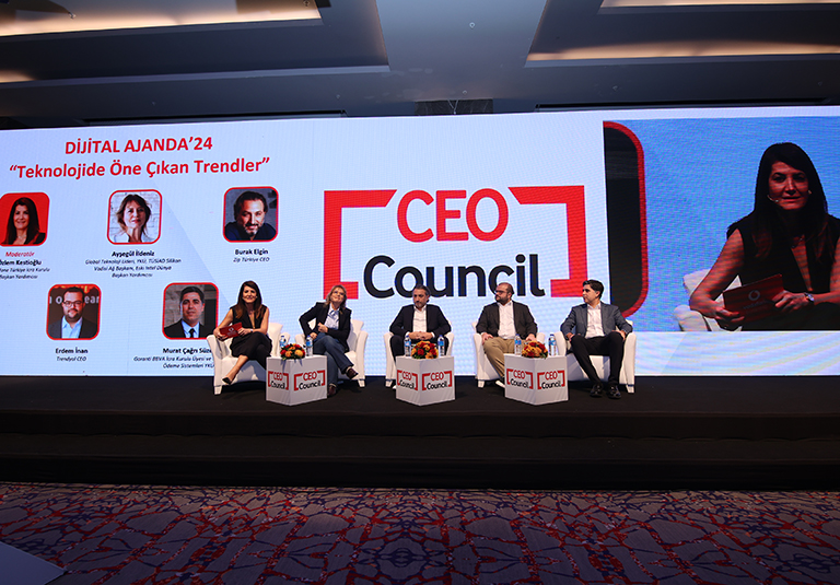 2024’ün dijital ajandası ve teknolojide öne çıkan trendlerin konuşulduğu panelde; Özlem Kestioğlu (Vodafone), Ayşegül İldeniz (Global Teknoloji Lideri), Burak Elgin (Zip Türkiye), Erdem İnan (Trendyol) ve Murat Çağrı Süzer (Garanti BBVA) öngörülerini paylaştı.
