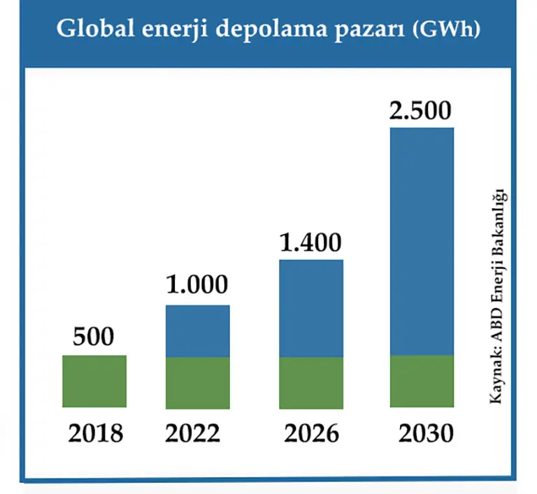 2017 yılında McKinsey tarafından yayınlanan bir raporda, “oyun bozucu” teknolojiler arasında “depolama” da yer almıştı. “Enerji sektörünün yeni bozucu faktörü enerji depolama sistemleri olacak. Düşük maliyetli depolama, enerji sektörünü değiştirecek. Etkileri derin olacak” saptamasıyla önemli bir alana dikkat çekiliyordu. Bunu başka araştırma kuruluşlarının raporları da izledi. En son World Economic Forum’un Mayıs 2022’de yayınladığı araştırmada, 2027 yılında “büyük değişime” neden olacak teknolojiler arasında yer aldı.