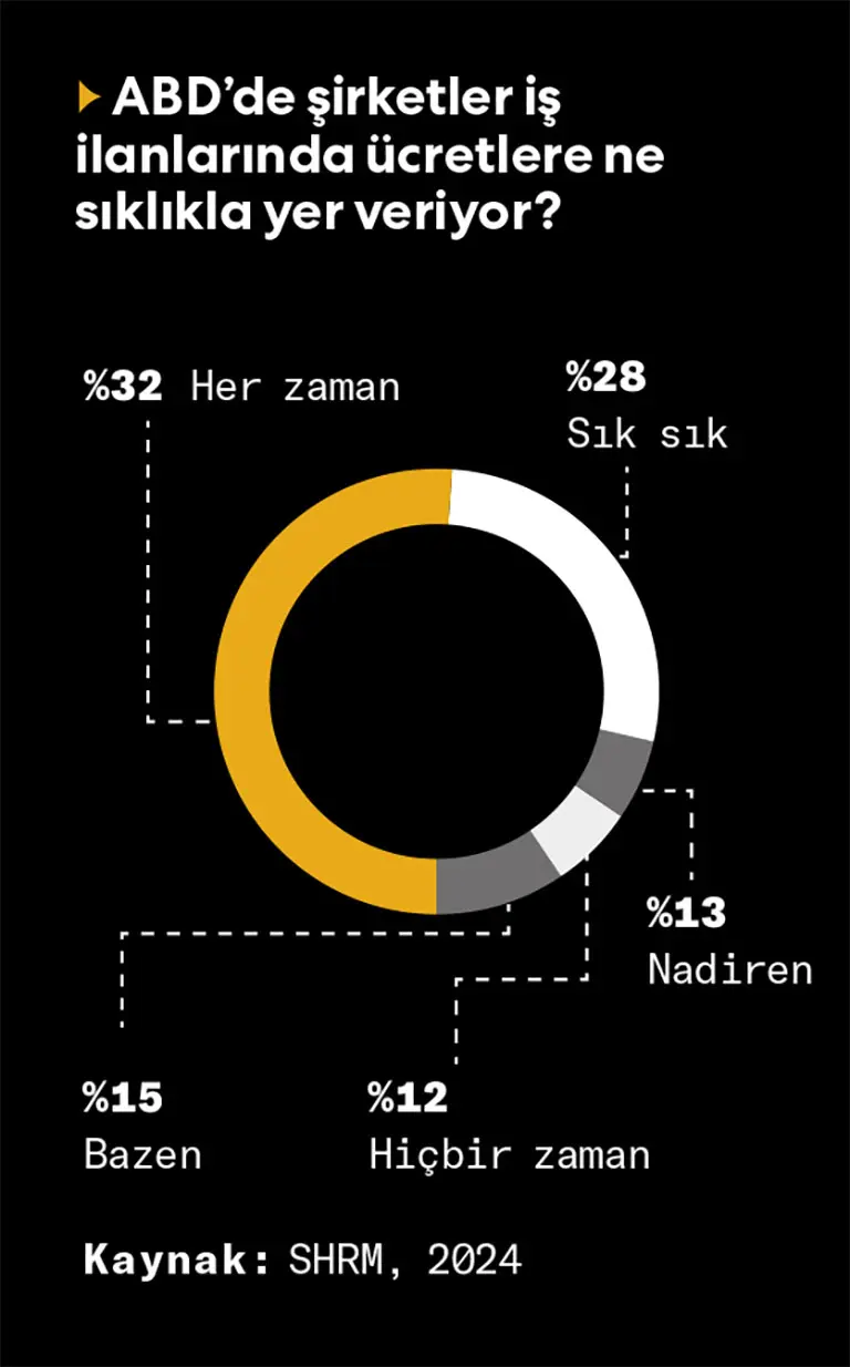 Bu farkındalık son anketlerde de istatistiklere yansıyor. Örneğin Mercer’ın 2024 Global Ücret Şeffaflığı anketine göre, iş arayan adayların yüzde 46’sı, iş ilanlarında ‘ücret bilgisi’ olmayan pozisyonlara başvurmaktan çekiniyor.