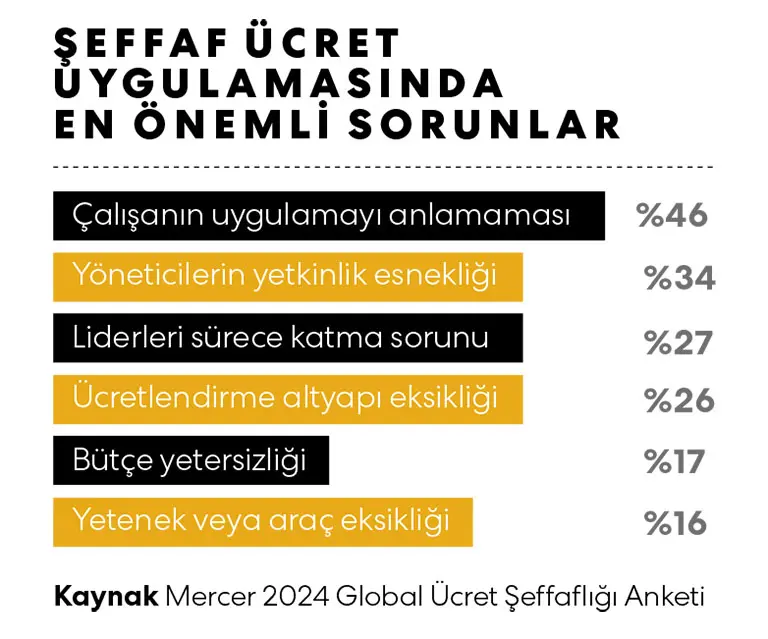 Mercer’ın 2024 Global Ücret Şeffaflığı anketine göre, şirketlerin yüzde 46’sı, çalışanlarının bu süreci yeterince iyi kavrayamadığını söylüyor. - YÖNETİCİLER YETERSİZ