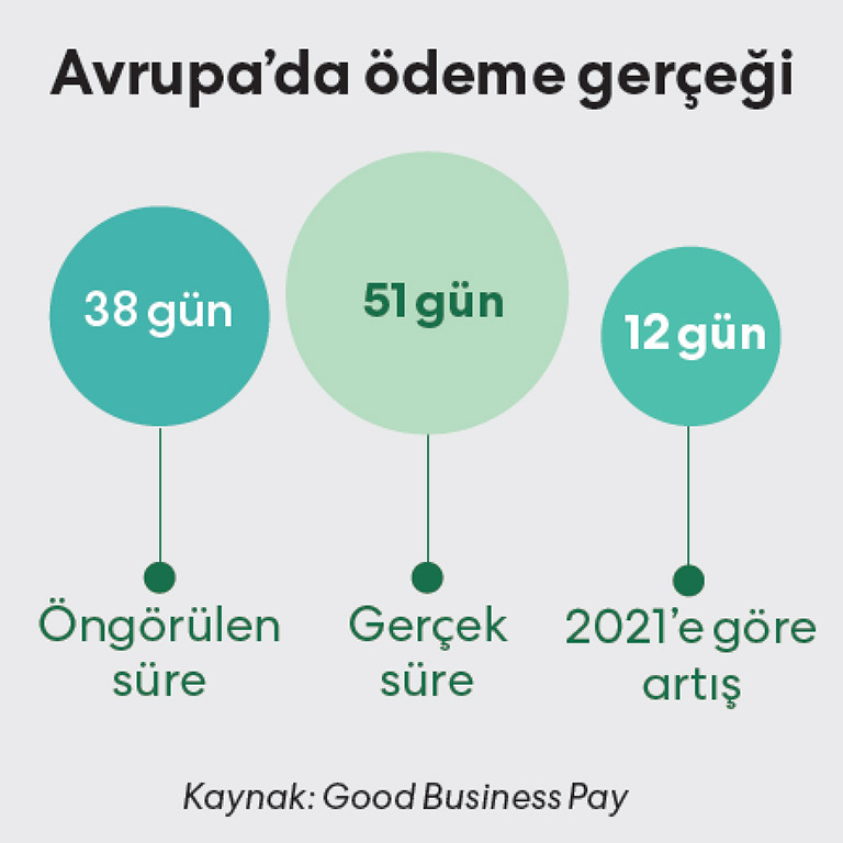 Good Business Pay’ın bir başka araştırması ise pandemide ortalama ödeme süresinin 36.4’ten 37.4 güne çıktığını gösteriyor. İngiltere’de ödemeleri düzenleyen Prompt Payment Code adlı düzenleme var. Araştırmaya göre, bu kurumun kurallarına uyulması ve sadece 1 gün erken ödeme yapılması durumunda, yıllık gelirleri 1.7 milyar pound düzeyinde artacak. Bir başka hesaba göre İngiltere’de ödemelerdeki gecikmelerden kaynaklanan 40-60 milyar pound tutarındaki KOBİ alacağı ‘kilitli” durumda ve ödenmeyi bekliyor.
