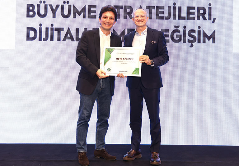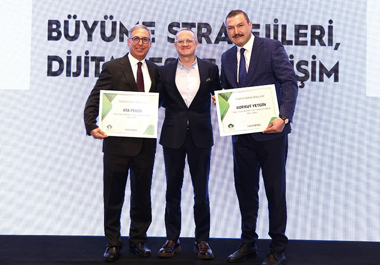 Jüri üyelerinin ‘Yılın Çiftçisi’ kategorisinde seçtiği Ata Peker (Atlas Bağları) ve Korkut Yetgin (Asyalale), ödüllerini Ekmel Baydur’dan (Migros) aldı.