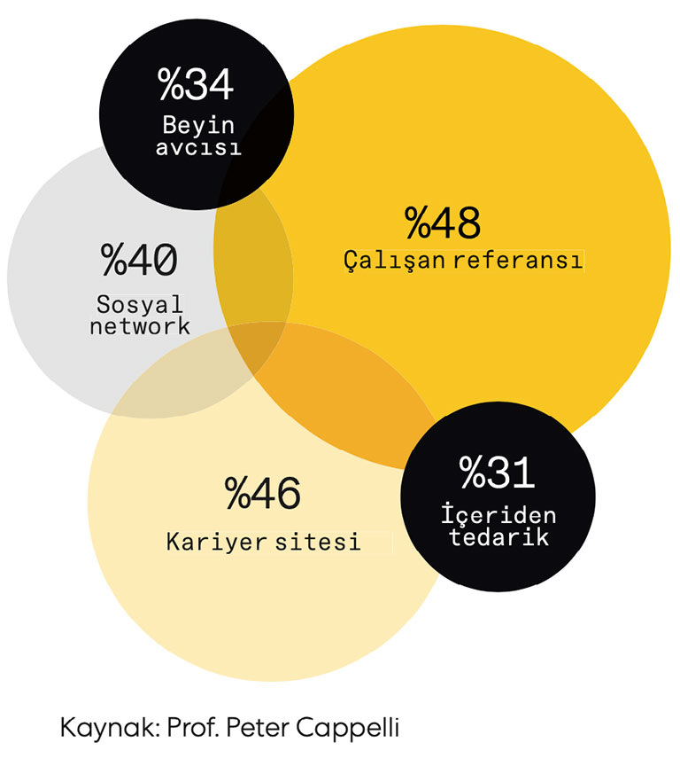 Wharton Business School’dan Prof. Peter Cappelli, bu konuyu değerlendiren bir araştırma yaptı. Prof. Cappelli’nin yaptığı çalışmada, “tavsiye” yüzde 48 ile ilk sırada yer aldı. Onu son yıllarda yükselen kariyer siteleri ile bir şekilde “tavsiye” olan sosyal/profesyonel network’ler izliyor.