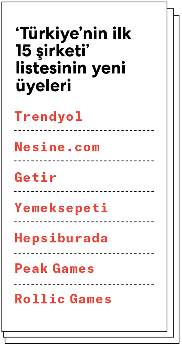 Ancak, özellikle son yıllarda gözden kaçan çok önemli bir gerçek var. Artık bu listelere Türkiye’nin En Büyük 100 İnternet şirketi listesinde 50 milyar TL ciro ile yer alan Trendyol ile Nesine.com gibi şirketlerin de girmesi gerekiyor. İlk 15-20 şirket içinde Getir, Yemeksepeti, Hepsiburada da rahatlıkla kendine yer bulabilir. Hızlı büyüme tempolarına bakıldığında, oyun şirketleri, fintech şirketleri ve yazılımcıların hızlı yükselişine tanık olabiliriz. Tıpkı ABD’de olduğu gibi…