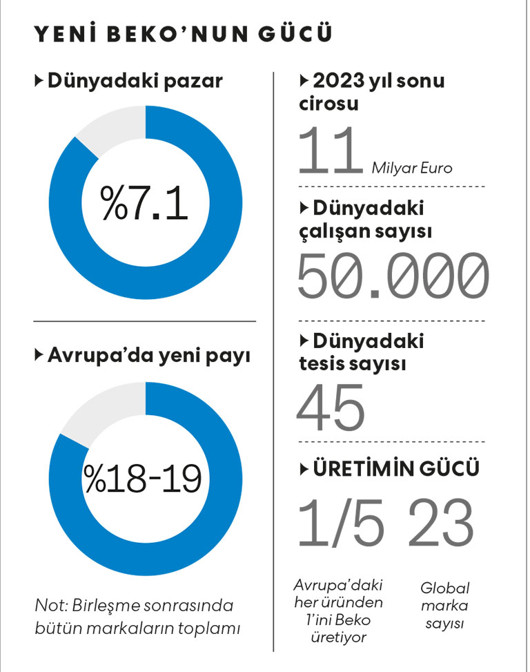 Birleşmeyle birlikte açık arayla Avrupa’nın en büyüğü olduk. Şimdi bir yeniden yapılanmadan geçeceğiz. Birleşme süreci var; bunlar sancılı ve kolay olmayan süreçler. Ama heyecanlıyım, çünkü Whirlpool’dan muazzam güçlü markalar, deneyimli insan gücü, satış sonrası servis hizmetleri veren büyük bir teşkilat devraldık. Diğer taraftan bizim ölçek ekonomisine sahip verimli fabrikalarımız, hızlı iş yapma biçimimiz, yüksek teknolojimiz, yeni ürün platformlarımız ve sürdürülebilirlik alanında liderliğimiz var – bütün bunları bir araya koyduğumuzda büyük bir güç oluşuyor.