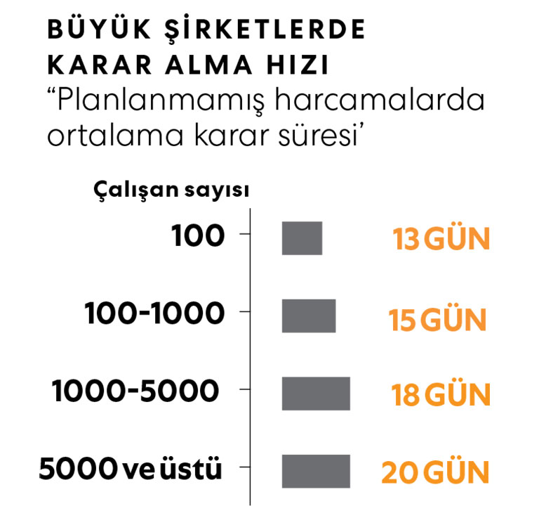 BMI araştırmasından önemli bir bulgu ise “bürokrasi, hızın düşmanıdır” şeklinde formüle ediliyor. Çünkü, yanıt verenlerin 3’te 2’si bürokrasinin karar almayı zorlaştırdığını, hızı azalttığını söylüyor. Bu oran büyük şirketlerde yüzde 80’e yükseliyor. Gary Hamel ve ekibinin araştırmasına göre “bütçelenmemiş” bir harcama için onay süresi büyük şirketlerde 20 gün ve üstündeyken, 100’den az çalışanı olanlarda 10 gün civarında.