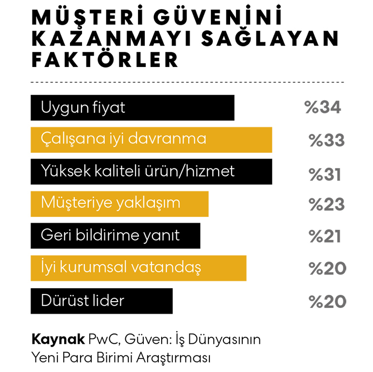 Deloitte’un araştırmasında, yüzde 10’luk güven artışının, müşteri bağlılığında yüzde 20’ye varan bir yükselişe neden olduğuna yer verildi. Araştırmaya göre, bu, şirketin yıllık gelirinde yüzde 15’e kadar artışa neden oluyor.