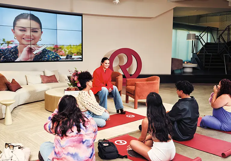Gomez, Rare Beauty’nin en sadık müşterilerinden bazılarıyla şirket merkezinde buluştu.