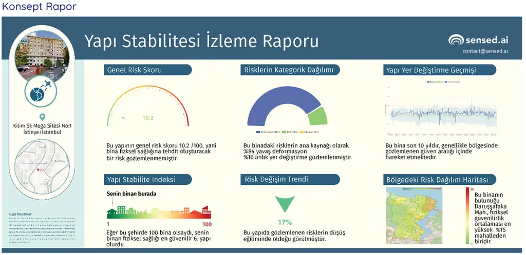 Binaların ve kritik altyapıların fiziksel durumunu izleyerek can ve mal kayıplarını en aza indirmeyi hedefleyen girişim Sensed AI, uydu tabanlı Sentetik Açıklıklı Radar (InSAR) verilerini yapay zekâ destekli modellerle işleyerek risk geçmişini analiz ediyor ve paydaşlara erken uyarılarla bilgi veriliyor.