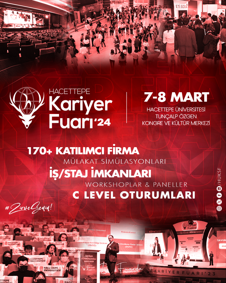 Türkiye’nin en büyük üniversite kariyer fuarı ünvanına sahip Hacettepe Kariyer Fuarı, 7-8 Mart 2024 tarihlerinde Hacettepe Üniversitesi Beytepe Yerleşkesi’nde yer alan Tunçalp Özgen Kongre ve Kültür Merkezi’nde gerçekleştirilecek.