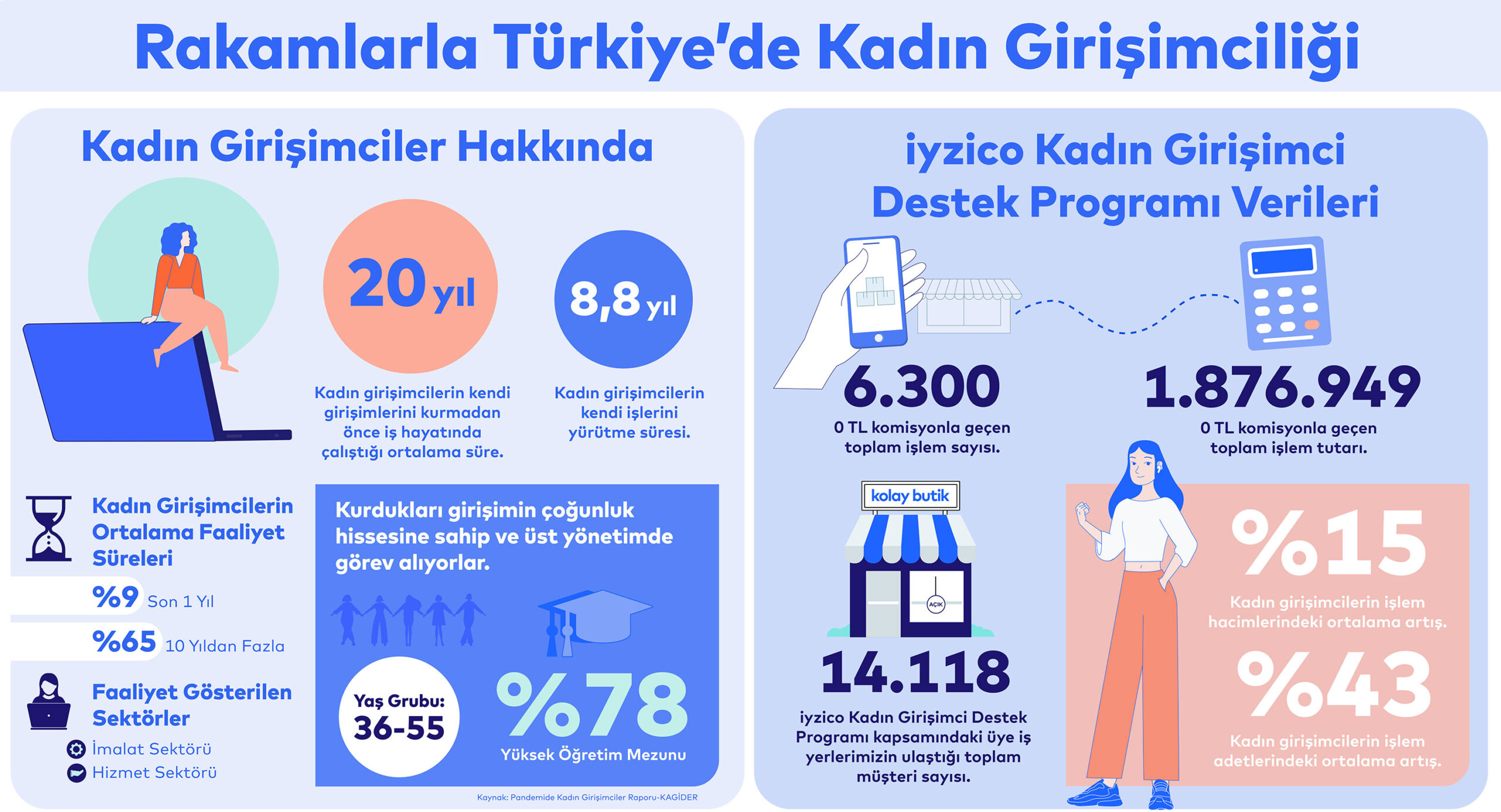 Finans teknolojileri alanında öncü şirketlerden iyzico, geçtiğimiz yıl 150 kadın girişimcinin dahil olduğu iyzico Kadın Girişimci Destek Programını başlattı. Finanstan eğitime, pazarlama ve tanıtımdan özel indirimlere kadar birçok avantajın sunulduğu program, 6 ayda katılımcıların işlem adedinde yüzde 43, işlem hacminde yüzde 15 oranında artış sağlamalarına katkı sağladı. 6 bin 300 işlem 0 komisyonla geçti ve program kapsamındaki üye iş yerleri 15 bin yeni müşteriye ulaşarak yaklaşık 2 milyon TL işlem tutarı elde etti.