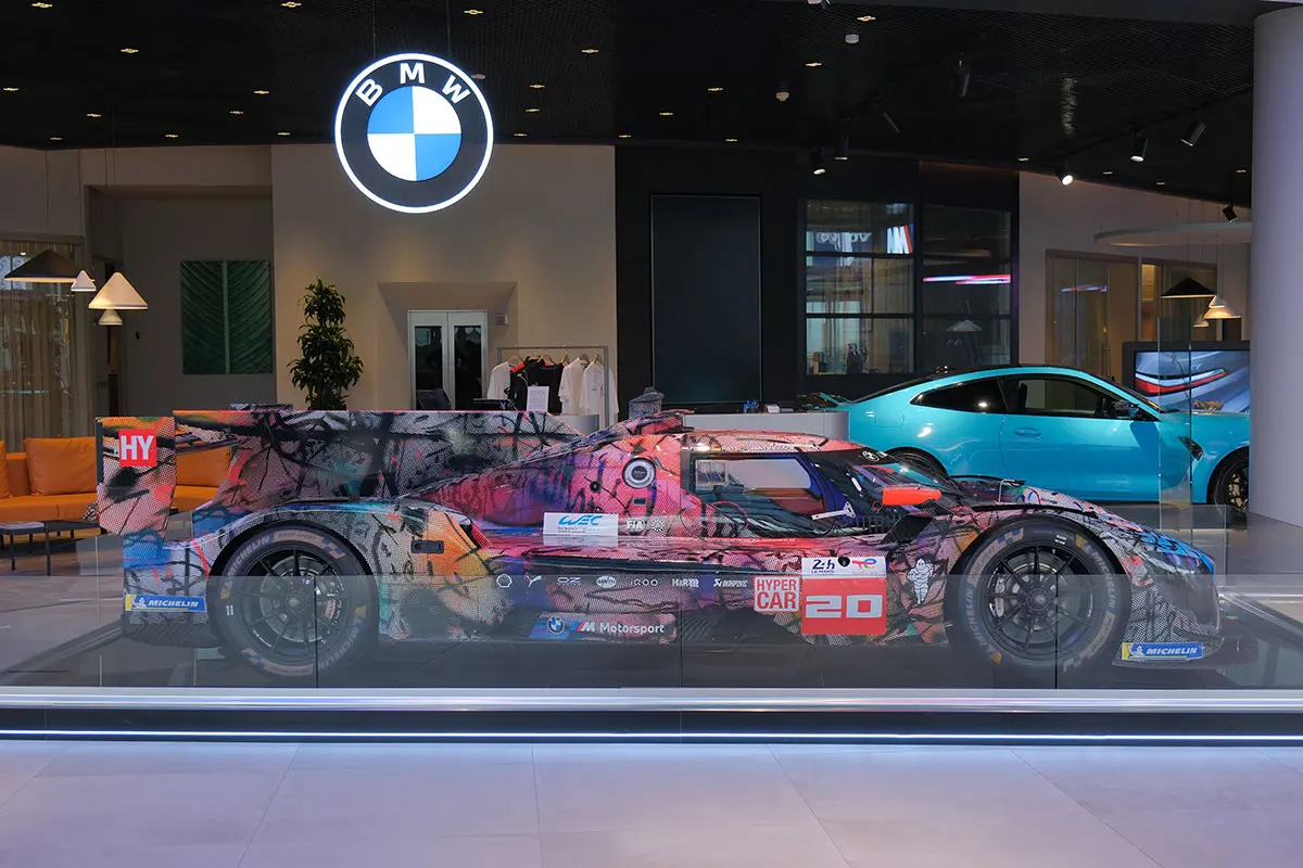 BMW M Hybrid V8, Amerikalı Ressam Julie Mehretu’nun “Everywhen” adlı tablosundan aldığı ilhamla tasarladığı görüntü motifini, BMW M Hybrid V8’in dış hatlarına yüksek çözünürlüklü bir görüntü olarak aktarmasıyla sanat eserine dönüşerek BMW Art Car Koleksiyonu’ndaki 20. ve en yeni otomobil olarak yerini almıştır.