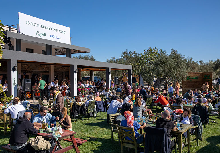 1878 yılından beri süregelen uzmanlığıyla zeytinyağını eşsiz tadı, kokusu ve kalitesiyle tüketici ile buluşturan Komili’nin, zeytinyağı ve kültürü bu topraklarda kuşaklar boyu yaşasın diye uzun yıllardır gerçekleştirdiği “Komili Zeytin Hasadı”nın 25.si Ayvalık’ta büyük coşkuyla yapıldı. Açılışını bu yıl usta sanatçılar Erkan Can ve Güven Kıraç’ın gerçekleştirdiği hasat boyunca Yazar & Şef Ömür Akkor, muhteşem yemeklerin zeytinyağı ile olan bağını anlatarak ve tattırarak misafirlere eşsiz bir deneyim yaşattı.