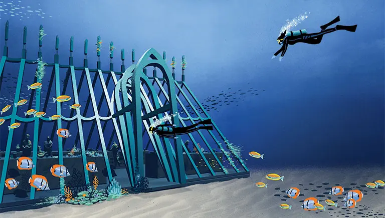 Su altinda müze kuran sanatçı